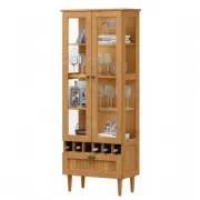Cristaleira em madeira com portas de vidro, ideal para organizar e expor taças, copos e bebidas. Possui prateleiras internas e nichos para garrafas, unindo praticidade, organização e um toque elegante ao ambiente.