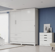 guarda roupa 3 pts 4 gvta guarda roupa 3 pts 4 gvta Dimensões aproximadas do produto: largura: 251 cm altura: 230 cm profundidade: 56cm Características: -material da estrutura: 100% MDP -quantidade de portas: 3 porta de correr -quantidade de gavetas: 4 com corrediça telescópicas -quantidade de prateleiras: 6 -tipo de puxador: em aço cromado -peso suportado por prateleiras 7kg/ por gavetas 6kg -acabamento: pintura UV -pés em ABS Informações complementares foto meramente ilustrativa, objeto e decoração não fazem parte do produto. As cores do produto podem variar de acordo com o monitor.