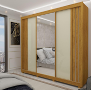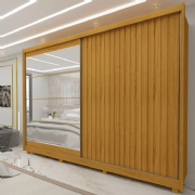 Guarda Roupa Apolo Ripado 2pt Ripado com Espelho e Pés Guarda Roupa Apolo Ripado 2pt Ripado com Espelho e Pés Dimensões: Largura 278 cm Altura 239 cm Profundidade 63 cm Características: - 100% MDF - Espaço para vestidos - Colmeia organizadora - Kit de espelhos incluso - 7 grandes gavetas internas - Porta lateral com ripas autênticas - Porta-joias com 15 nichos e chaves - Puxadores em perfil na cor dourada Informações complementares: Foto meramente ilustrativa, objetos e decoração não fazem parte do produto. As cores do produto podem variar de acordo com o monitor.