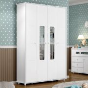 Roupeiro com Cômoda Infantil Meu Bebê Roupeiro com Cômoda Infantil Meu Bebê Dimensões: Altura: 183 cm Largura: 145 cm Profundidade: 42 cm Peso: 58 kg Características: 100% MDF; Pintura em UV branco brilho; Abertura em acrílico; Acrílico para as janelas; Gavetas suportam até 6 kg distribuídos uniformemente; Prateleiras suportam até 15 kg distribuídos uniformemente; Dobradiças em aço; 4 gavetas e 2 portas; 1 Cabideiro em alumínio; Informações Importantes Garantia de 90 dias contra defeitos de fabrica. Foto meramente ilustrativa, objetos e decoração não fazem parte do produto. As cores do produto podem variar de acordo com o monitor. Verifique se as dimensões do móvel cabem com seu espaço disponível. Recomendações de uso, manutenção e limpeza: Limpar com flanela ou pano macio seco, não utilizar produtos abrasivos. desengordurante, álcool ou solvente como saponáceos, esponja de aço, outros. Não expor o produto diretamente a luz solar e à umidade.